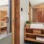 Die 1-Zimmer- Gud Jard Lodge Nr 10 - Wohngesundes Design-Ferienhaus bietet seinen Gästen ein entspannendes Erlebnis mit einer Sauna.